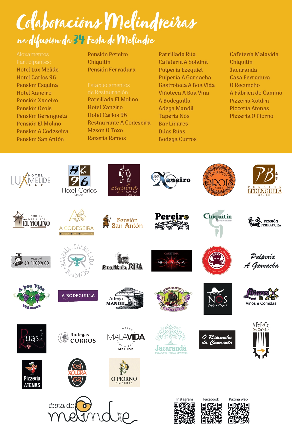 Aínda que durante moitos anos se falou da Festa do Melindre, nos últimos anos, a homenaxe estendeuse a toda a repostería típica e tradicional de Melide e da súa comarca. En concreto, fálase de tres produtos que recollen a esencia da tradición reposteira da zona: o melindre, o rico e o amendoado.